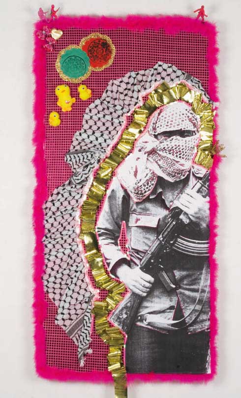 Anche se quando un anno fa vedemmo per la prima volta i suoi collage alla Fondazione Merz di Torino nell’ambito della mostra Speranze e dubbi. Arte giovane tra Italia e Libano non ci avevano colpito troppo favorevolmente. Quelle immagini pop di soldati (uomini e donne) che imbracciano armi e fiori, quei girotondi di “omini” rosa shocking che attraversano strade e cancelli, come i suoi sgargianti collage montabili e smontabili all’occasione, ci parlavano di un modo naif, a tratti sordamente euforico, di esorcizzare la realtà di guerra e distruzione che il Libano ha vissuto quasi ininterrottamente per più di vent’anni.