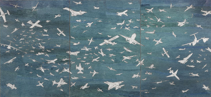In primo piano, il multiforme giocare picassiano con le maschere di Arlecchino, di saltimbanco dell’anima, Trickster, e Ermete Trismegisto avvezzo a tramenare con tutte le possibili alchimie pittoriche, in un movimento continuo di un pensiero per immagini che procede come un fiume in piena. Vicino al linguaggio dei sogni, nelle sue deformazioni, condensazioni, polisemie. Eppure mai preso nella trappola surrealista di tentare una trascrizione meccanica e razionale delle immagini della notte.