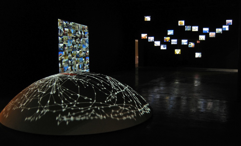 Nella Fornace di San Ferdinando, invece, il tema viene sviluppato dall’artista Hasan Elahi a partire da una brutta esperienza fatta sulla propria pelle all’aeroporto di Detroit dove l’artista di ritorno da un lungo viaggio è stato sottoposto a interrogatori come fosse un sospetto terrorista. E questo senza che ci fosse a suo carico nessun indizio. Come se il colore della sua pelle e il suo cognome bastassero a fare di lui un potenziale attentatore. Da quel giorno in cui fu sottoposto alla macchina della verità e a domande del tipo: “lei dove si trovava l’11 settembre?” Hasan Elahi ha deciso di tracciare ogni aspetto della sua vita, trasformando la violenza subita in un’installazione dal titolo The Orwell Project, in cui i fotogrammi della sua esistenza quotidiana vanno a formare inaspettate e immaginifiche sculture ( Simona Maggiorelli, Left)