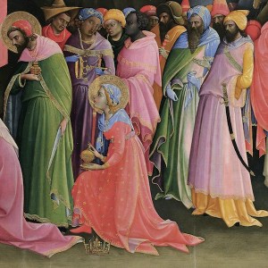 La tela conservata agli Uffizi, dopo tre anni di restauro, ha recuperato ora una piena leggibilità. Brillano gli inserti d’oro e d’argento ma soprattutto emerge la raffinata pittura tonale che dà profondità alla scena, in cui anche lo spettatore è come risucchiato.